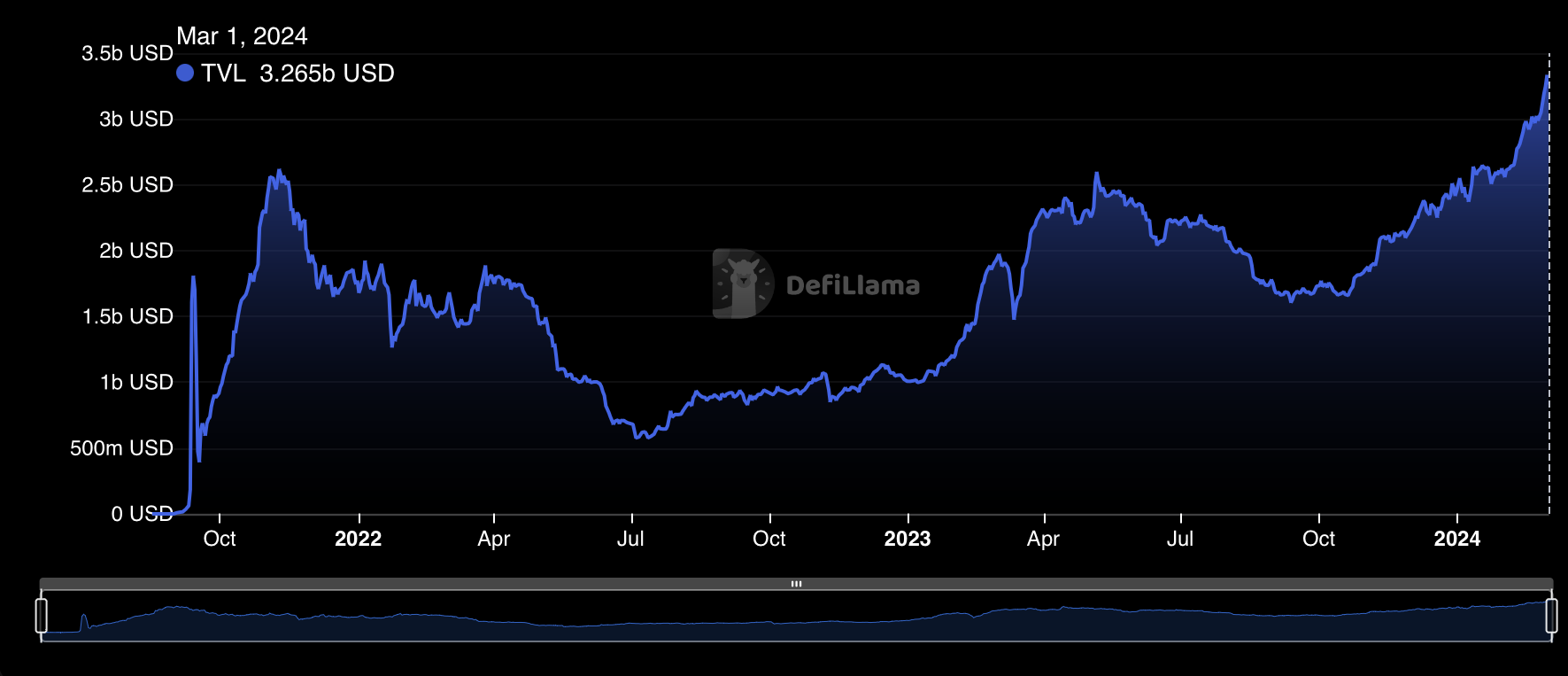 On January 1, its TVL stood at $2.45 billion, marking an increase of around $820 million over two months.