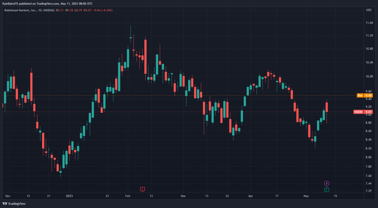 Robinhood stock (HOOD) dropped to $8.21 on May 4 but is currently trading at $9.49 in pre-market hours. Shares prices have gained 15.7% since the beginning of the year.