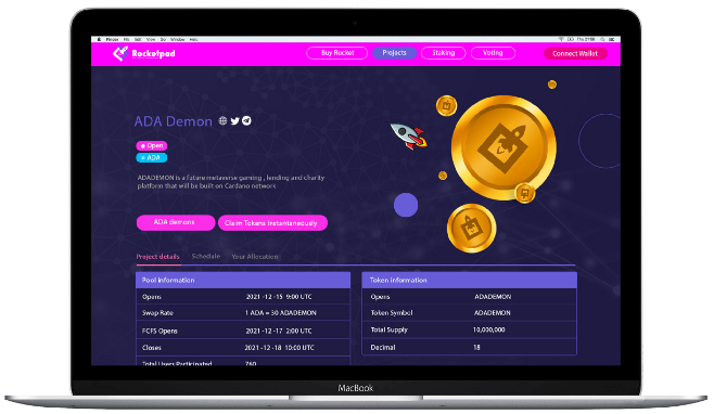 $ROCKET is the utility token of ROCKETPAD and its multiple use-cases is built on the Cardano Blockchain which will power the ROCKETPAD Ecosystem, $ROCKET Token will be used as a subscription token to navigate our Rocketpad IDO Launchpad.