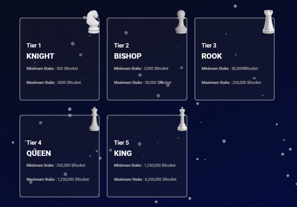 - QUEEN: 250,000 – 1,250,000 $ROCKET