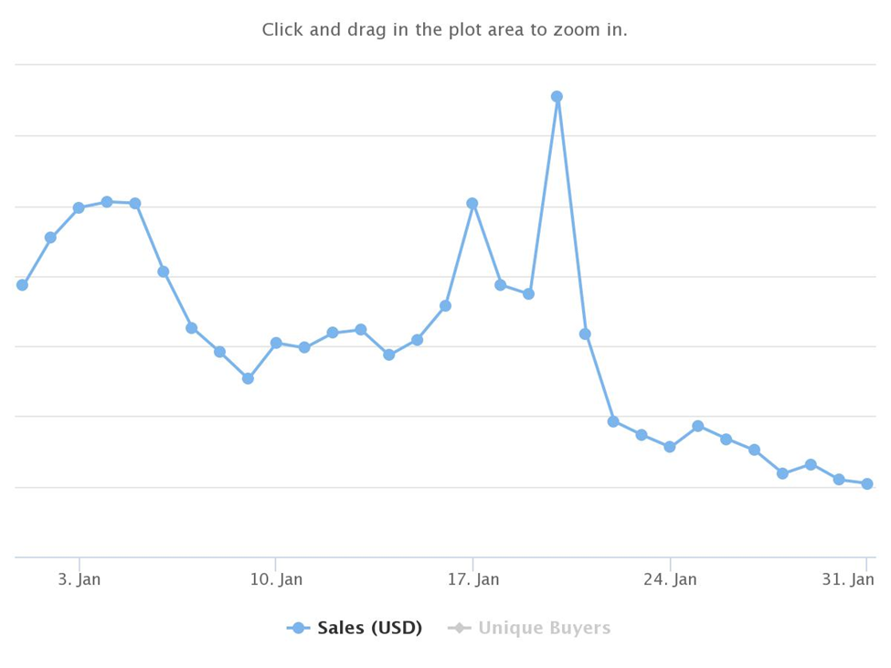 In relation to Jan. 2022 which was the chain’s yearly high in sales volume, there were 314,642 unique buyers and 1.29 million transactions. In Jan., Ronin generated approximately $126.49 million.