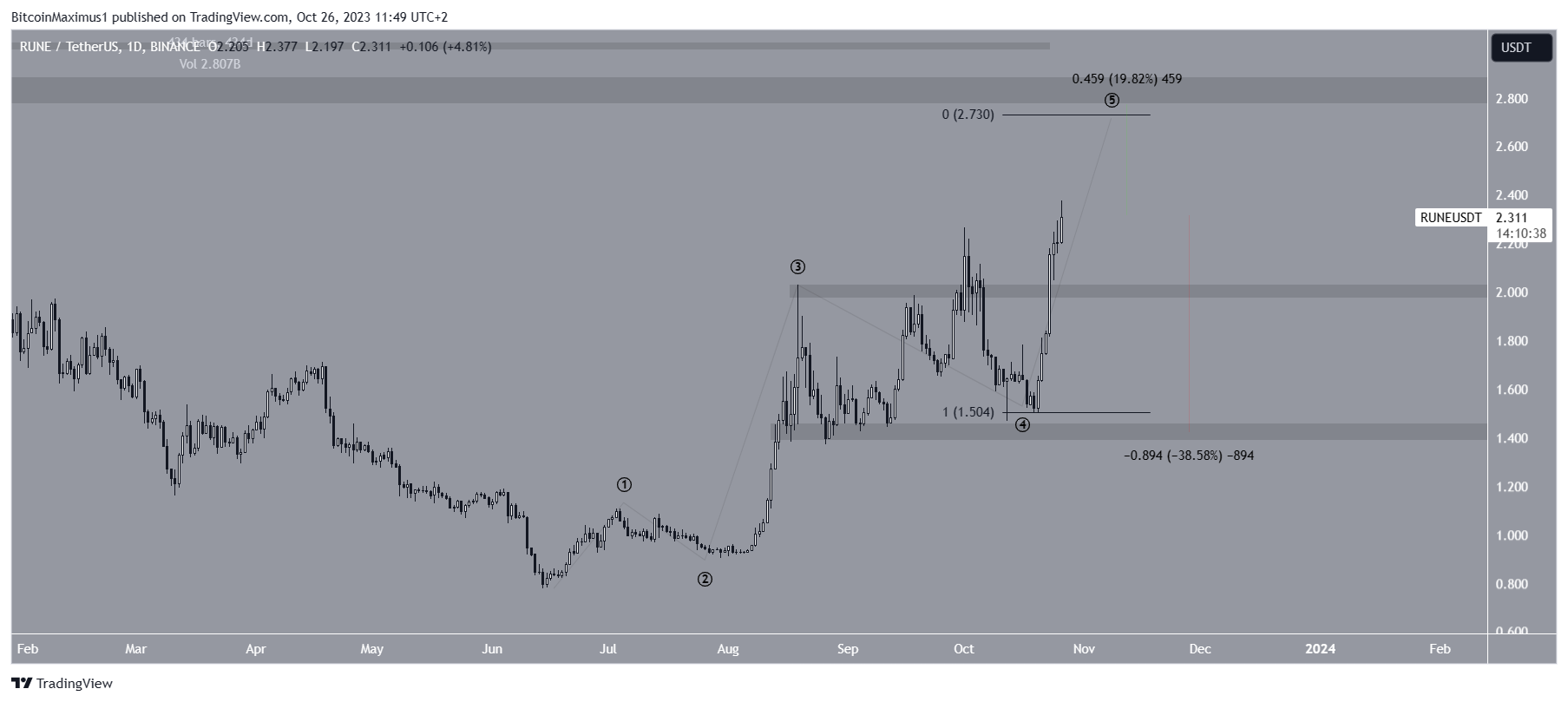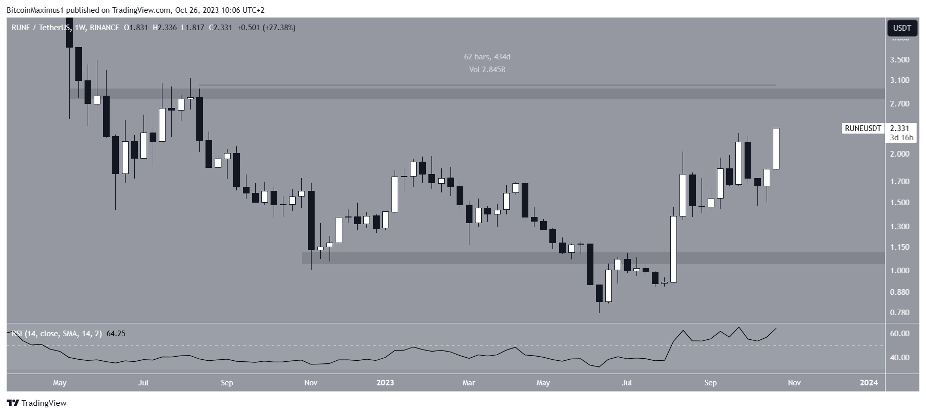 The RUNE price has increased since June, when it was trading at a low of $0.78. The price created a higher low in August and accelerated its rate of increase afterward, reclaiming the $1.05 resistance area.