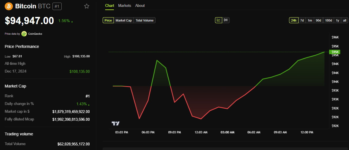 The value of that BTC stash was around $28 million at the time, but it has since grown to approximately $95 million, based on current rates.