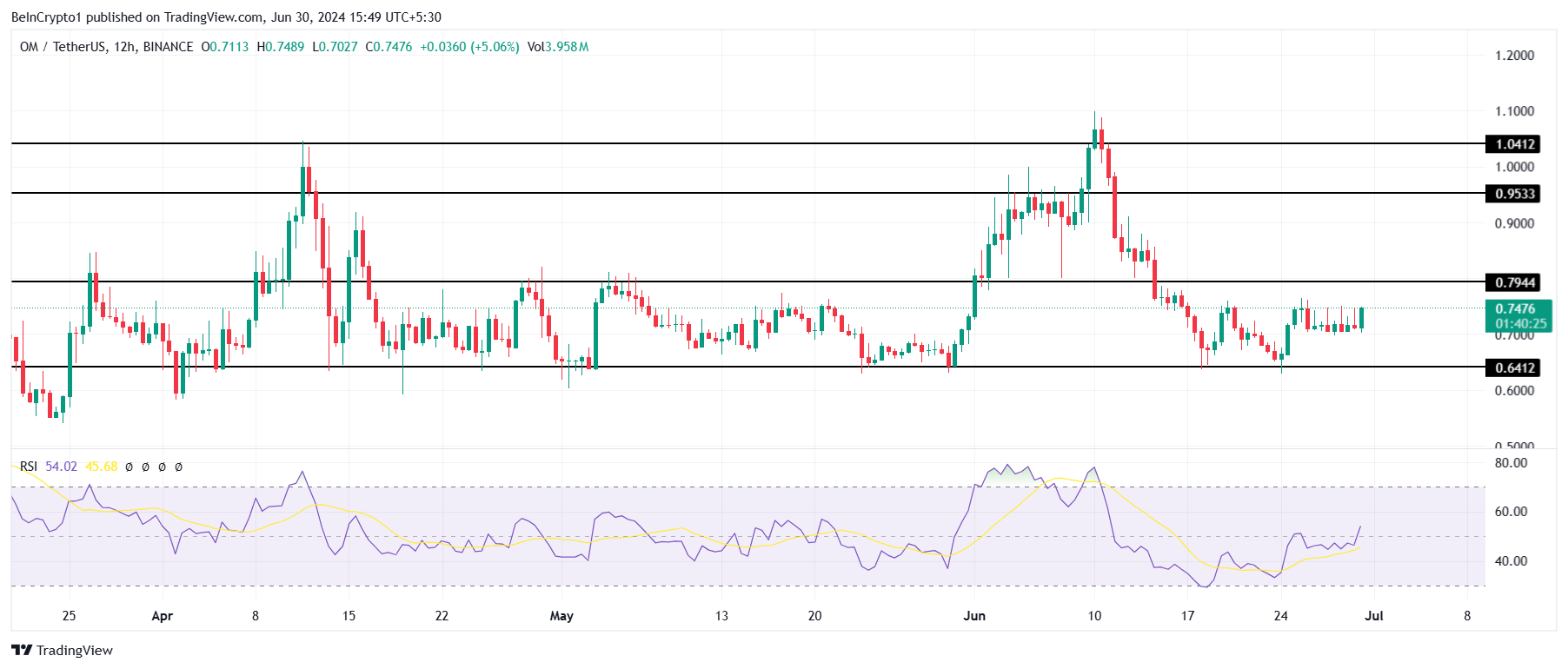 Nevertheless, it managed to sustain the critical support of $0.64, which has been unbroken for three and a half months now. This gives OM enough strength to bounce back since the RSI is nearly in the bullish zone.