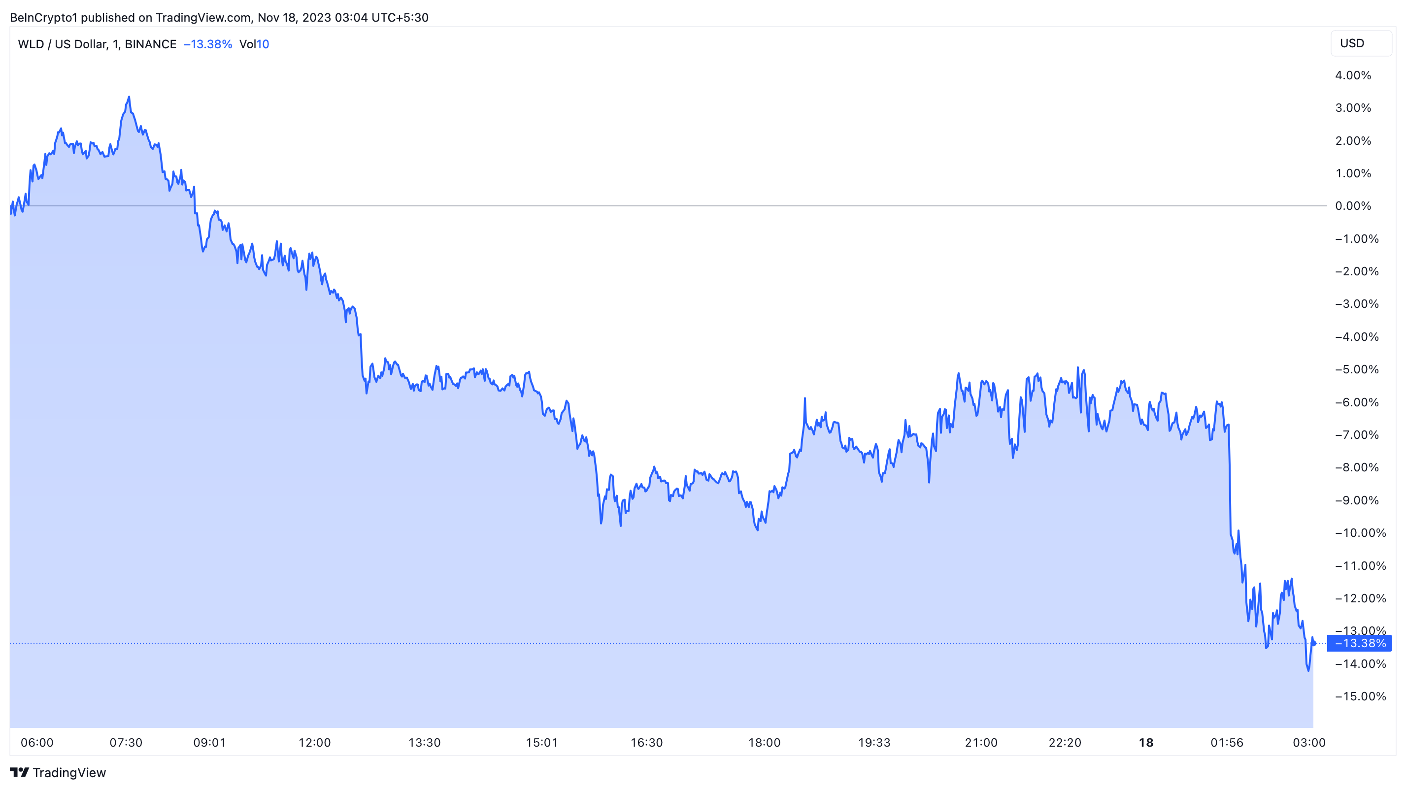 The price of Worldcoin (WLD) dropped over 13% after OpenAI CEO Sam Altman’s departure.
