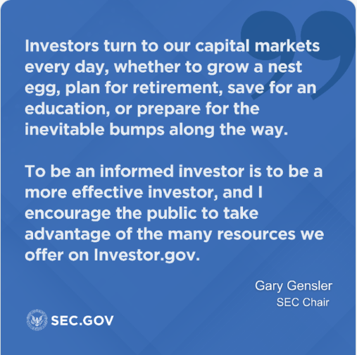 On April 3, the SEC announced “Free Investor Education Resources” during “Financial Capability Month.”