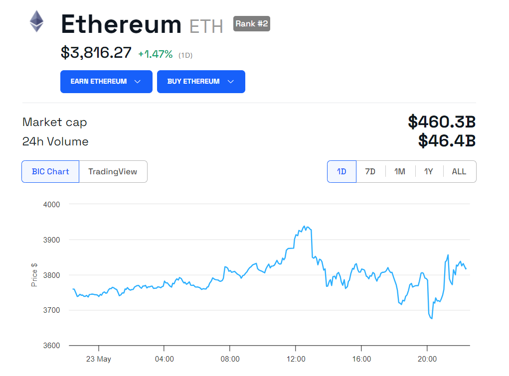 In response to the news of the approval, ETH’s price increased from $3,675 to $3,856. However, at the time of writing, it is now trading at $3,816.