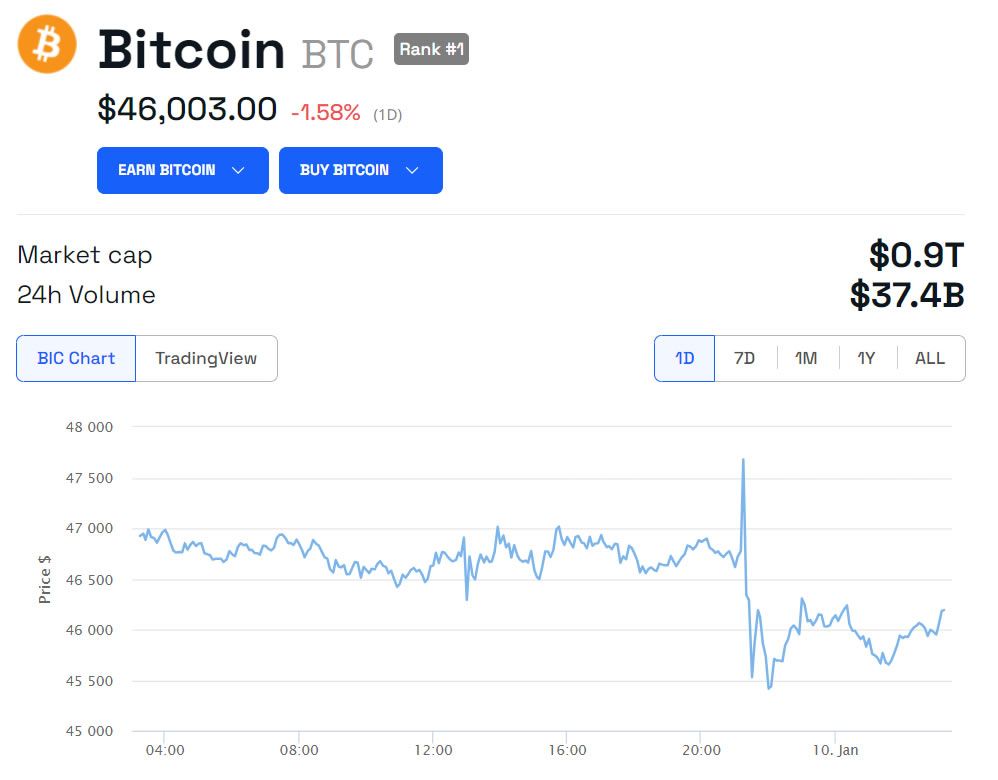 Bitcoin prices spiked to $47,680 when the tweet went viral but quickly slumped to $45,415 within an hour after.