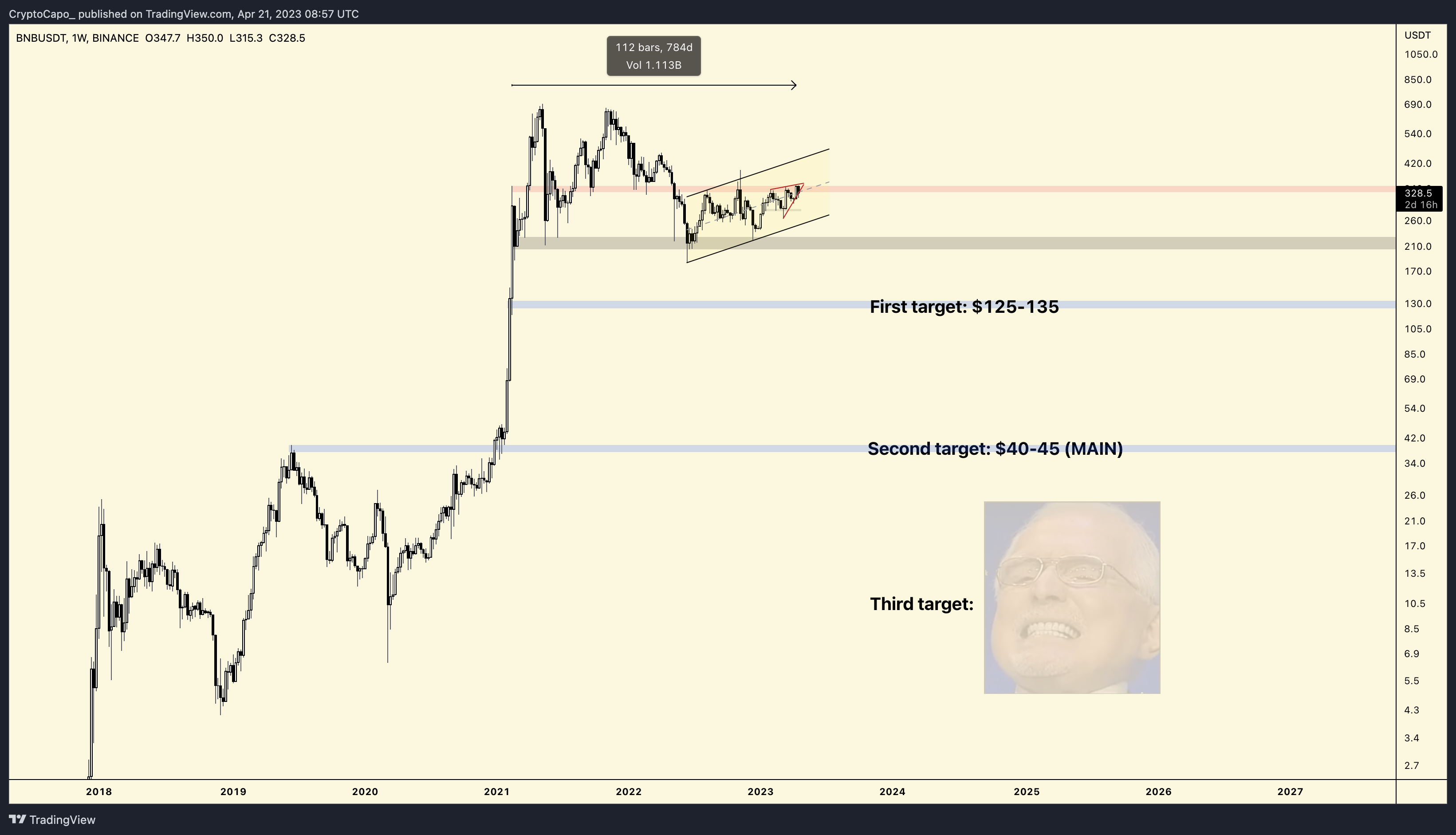 - The Striking Similarity to the FTT Chart: The BNB chart resembles the FTT chart. Crypto Capo believes the only difference is that BNB’s timeline is more extended.