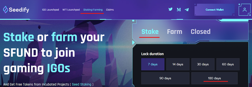 Through the Seedify NFT Launchpad, $SFUND token holders who stake/farm their $SFUND tokens on the Seedify staking website will be able to qualify to participate in Initial NFT Offerings (INOs).
