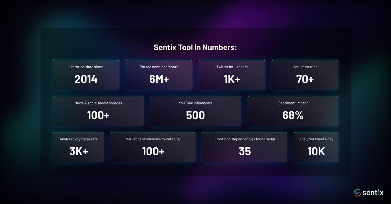 - Comprehensive Coverage: Sentix tirelessly scans a broad spectrum of sources, from 9K tweets to 250K news articles daily, ensuring that no critical information slips through the cracks.
