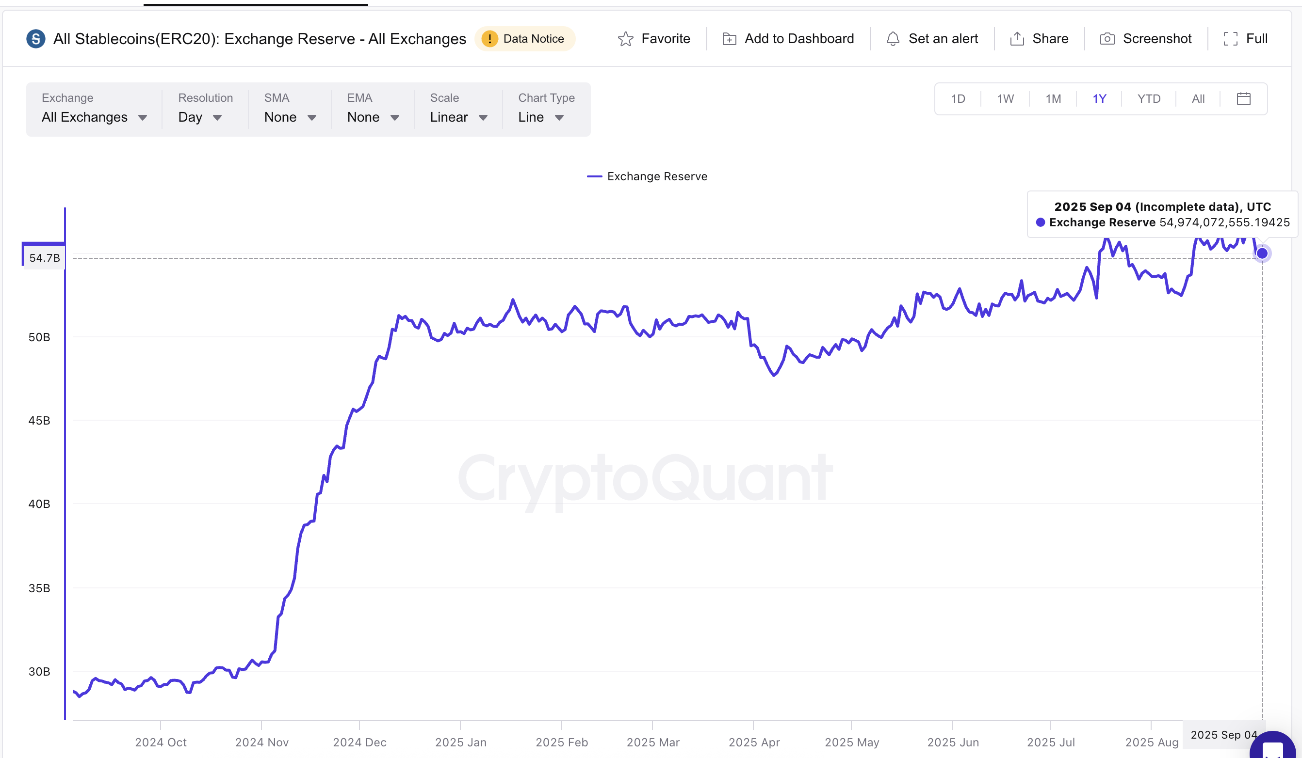 This cushion means capital is already on-chain if there are price dips, unlike prior crypto Septembers.