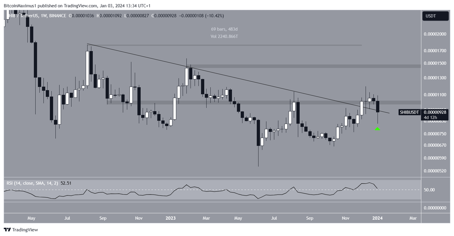 The Shiba Inu (SHIB) price broke down from a short-term continuation pattern on December 17.