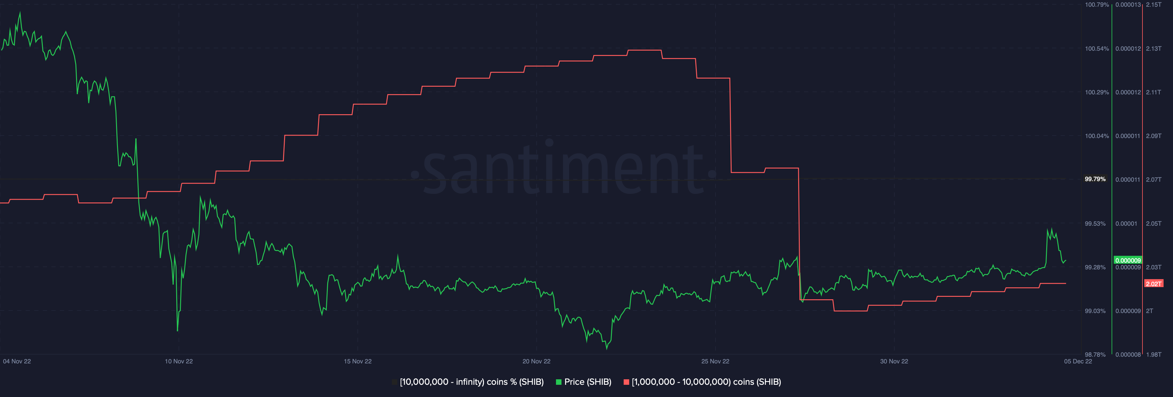 Shiba Inu whales holding one million to 10 million SHIB reduced their holding by 12 billion tokens from Nov. 23 to Dec. 5.