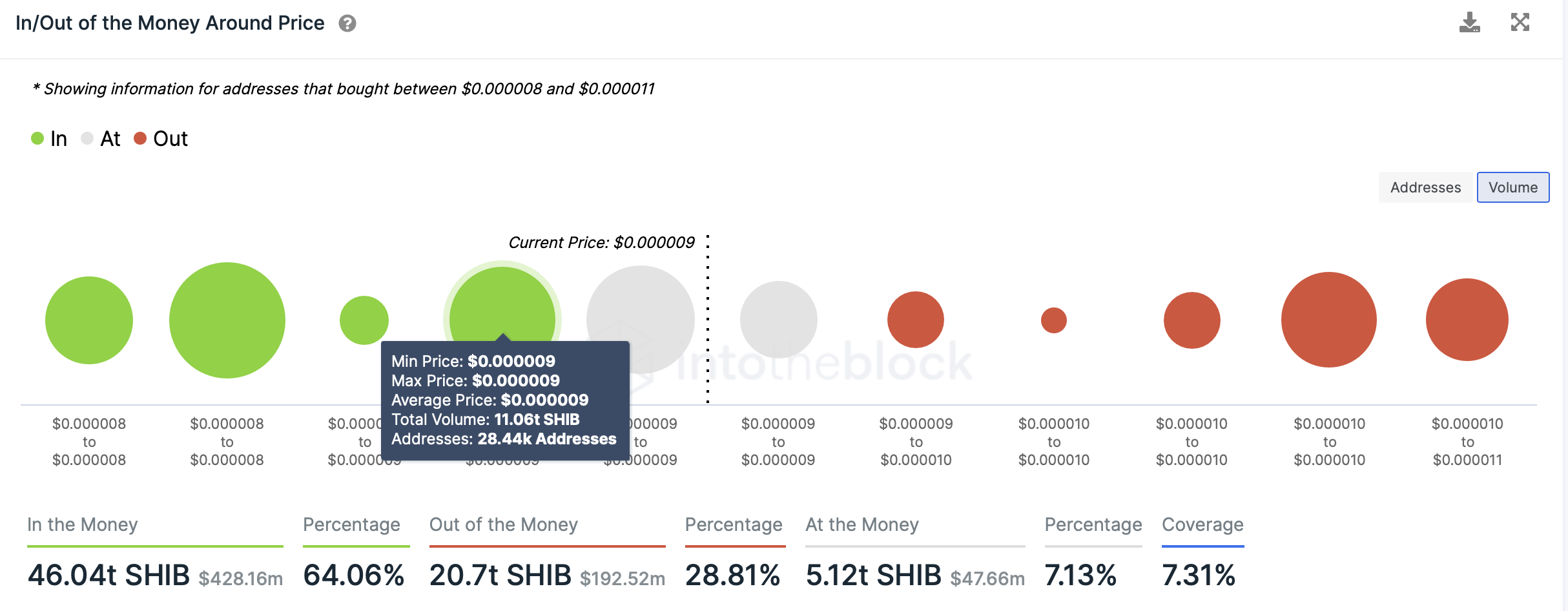 At the $0.0000090 mark, 28,440 addresses held 11.06 trillion SHIB. A fall below the $0.0000090 level can lead to further losses. However, if bulls are able to push price action, a short-term rise to the $0.0000095 mark can be expected.