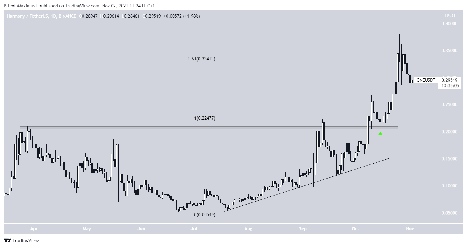 After validating the $0.205 area as support (green icon), ONE resumed its upward move and reached a new all-time high on Oct 26.