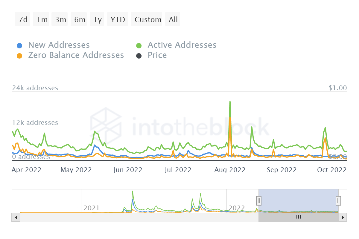 From a price perspective, SHIB traded close to the $0.00001000 support level, which acted as a crucial resistance during Q2 and Q3 2022. The Daily RSI headed toward the oversold zone, indicating that sellers dominated the market as trade volumes maintained low levels.