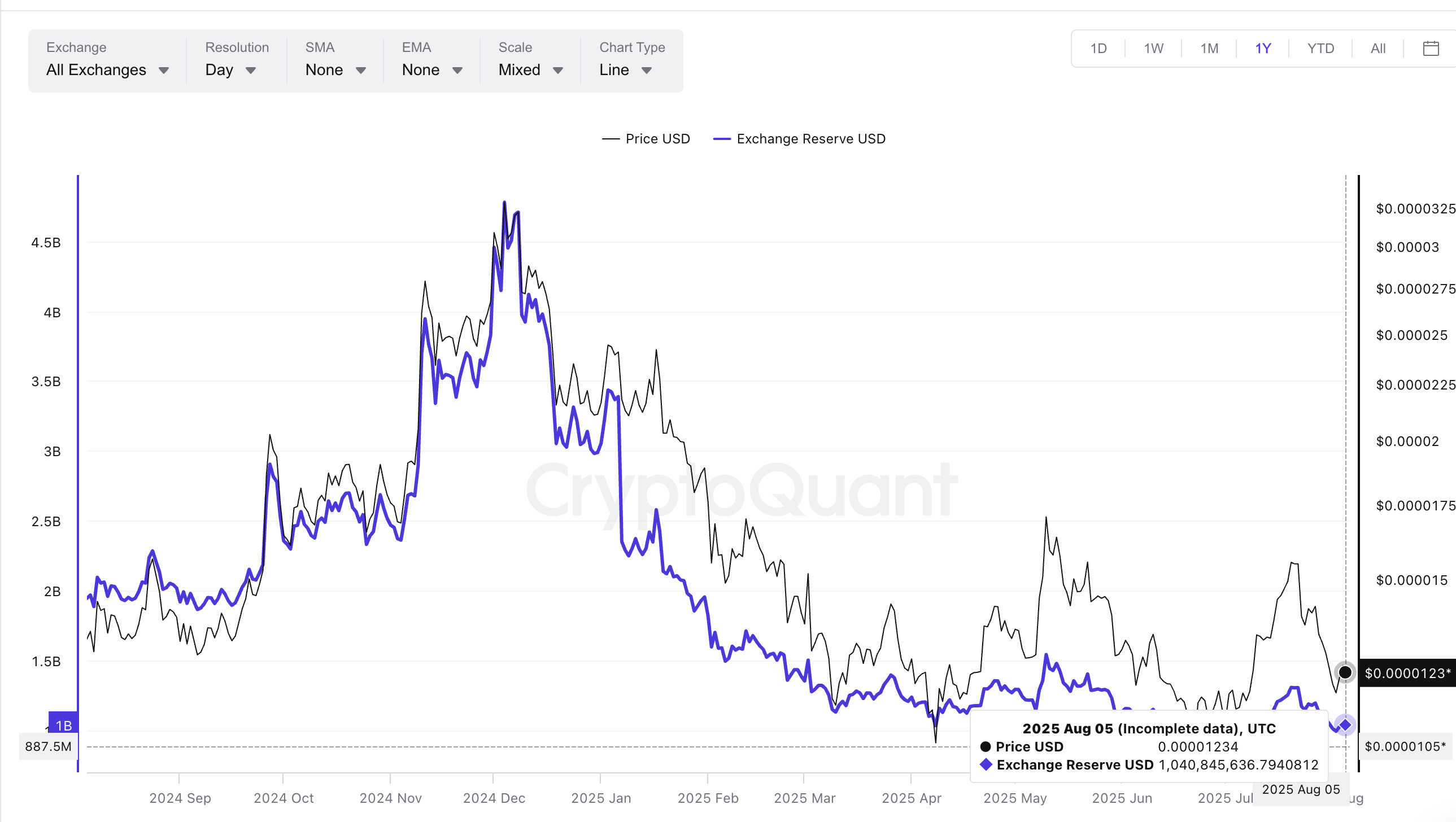 The reserves hit a 12-month low of 895.9 billion SHIB on June 22. Two days ago, the figure was around 995 billion, and as of August 5, it has increased marginally to 1.04 trillion.