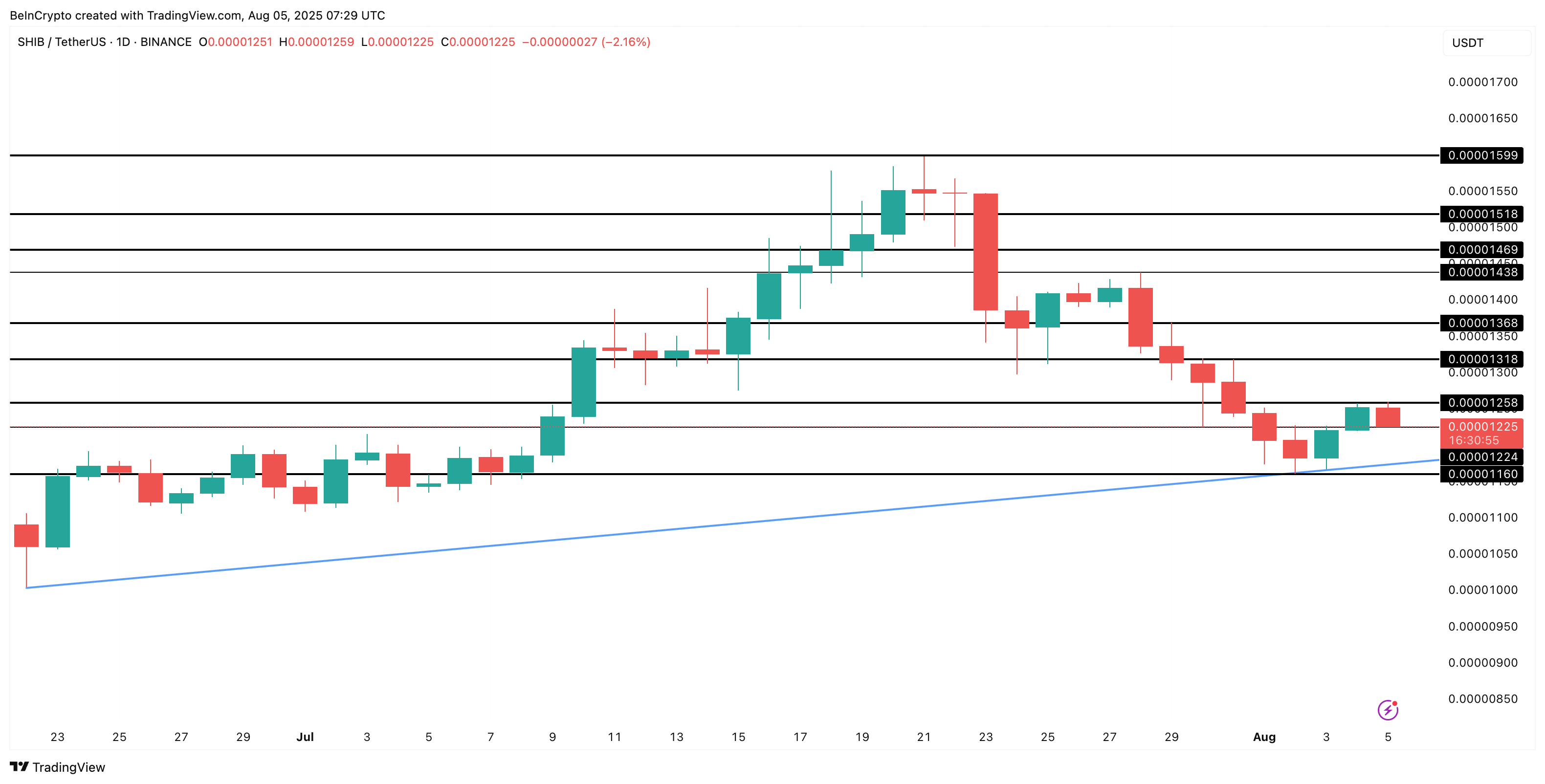 Shiba Inu Price Holds Ascending Support, But Resistance Levels Stack Up