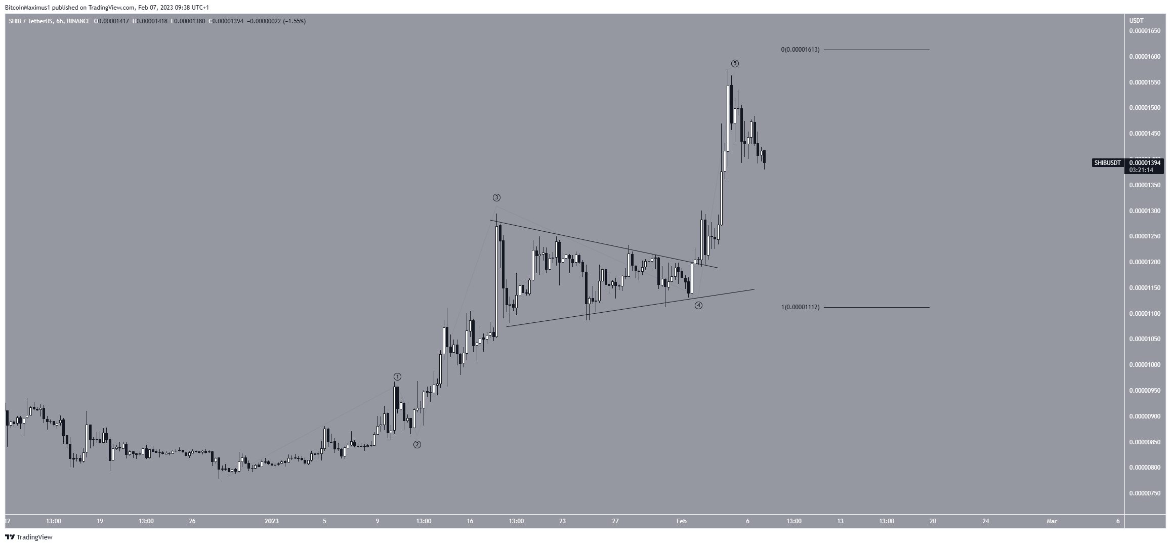 Whether the SHIB price falls below the $0.0000139 resistance area could determine the future price’ direction. Staying above the area could lead to a retest of the Aug. 2022 high at $0.0000180. On the other hand, a breakdown from the $0.0000139 area would lead to a drop of $0.0000118.