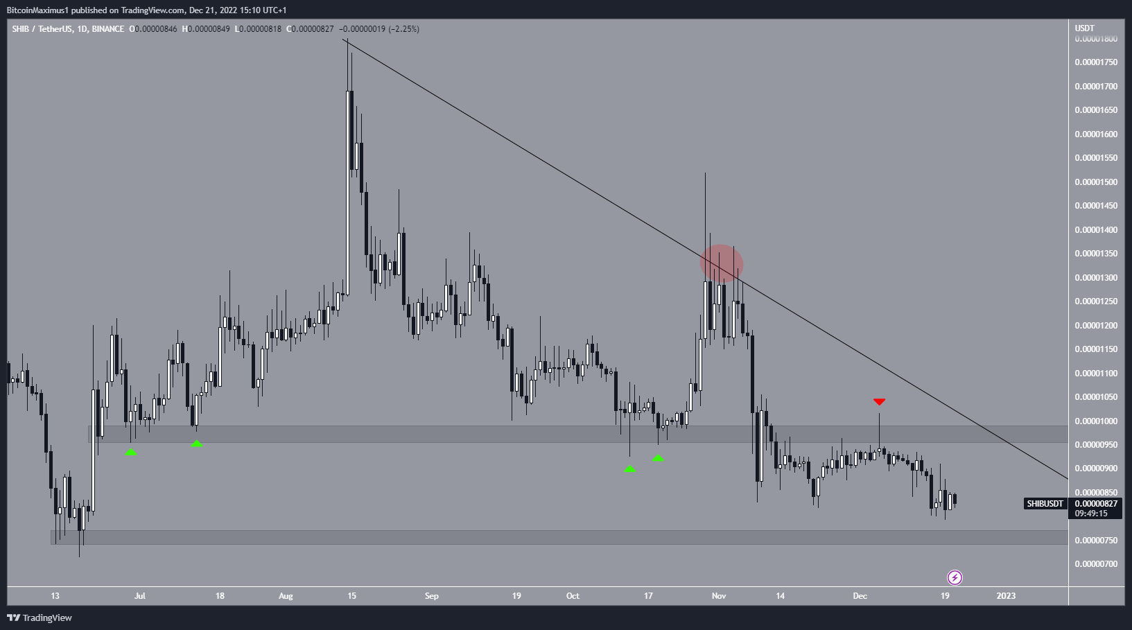 After the breakdown, the area rejected the SHIB price on Dec. 4 (red icon) and fell over the next 24 hours. So far, it has reached a low of $0.0000079.