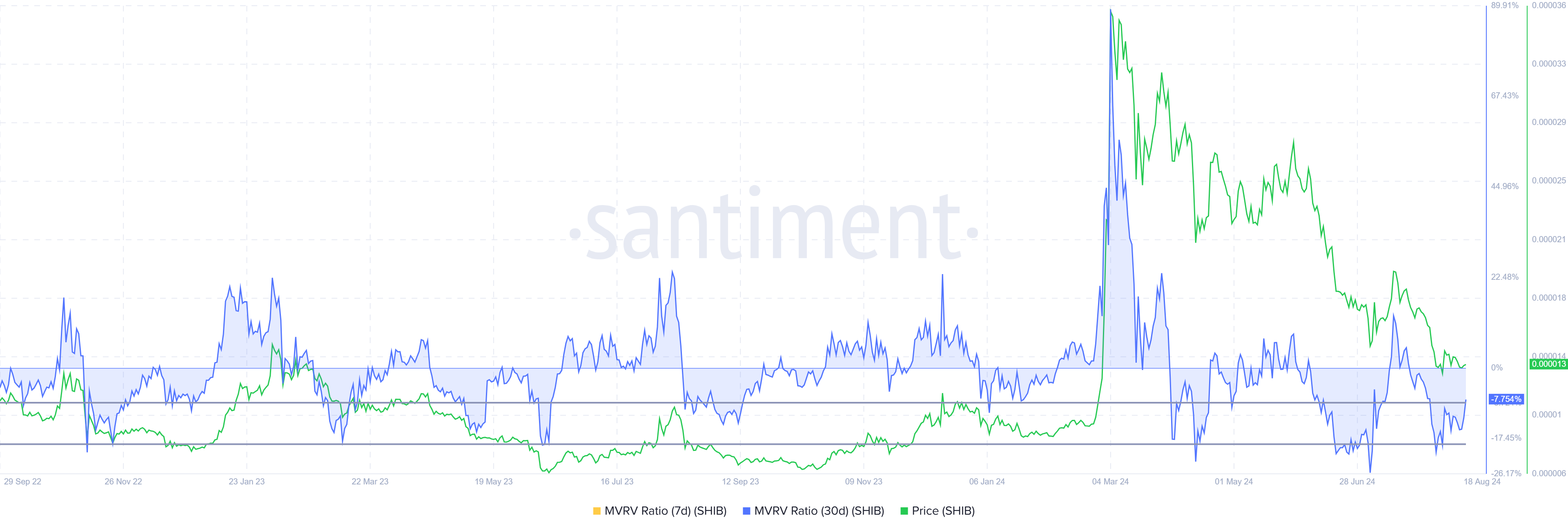 As a result, investor participation in Shiba Inu has reached its lowest point in six months. However, the low prices also present an opportunity for SHIB investors, as the Market Value to Realized Value (MVRV) ratio suggests. The MVRV ratio assesses investor profit and loss.