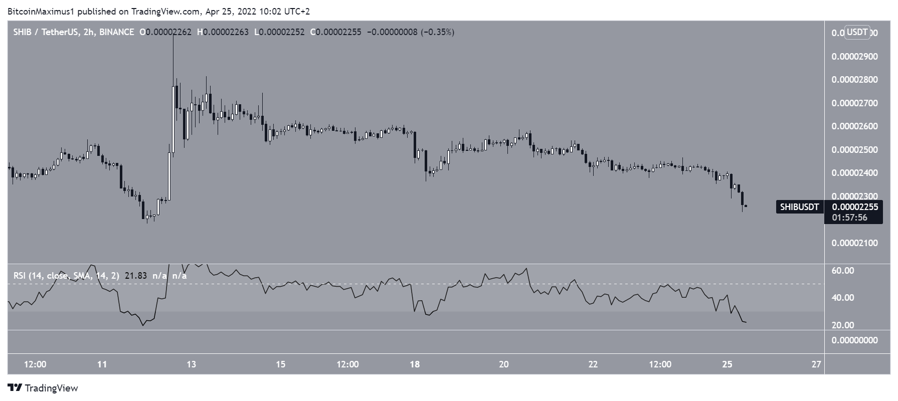 Similarly, there are no bullish signs in the two-hour chart. While the RSI is extremely oversold, there is no bullish divergence in place. Therefore, it seems more likely that SHIB will break down from the triangle.Â
