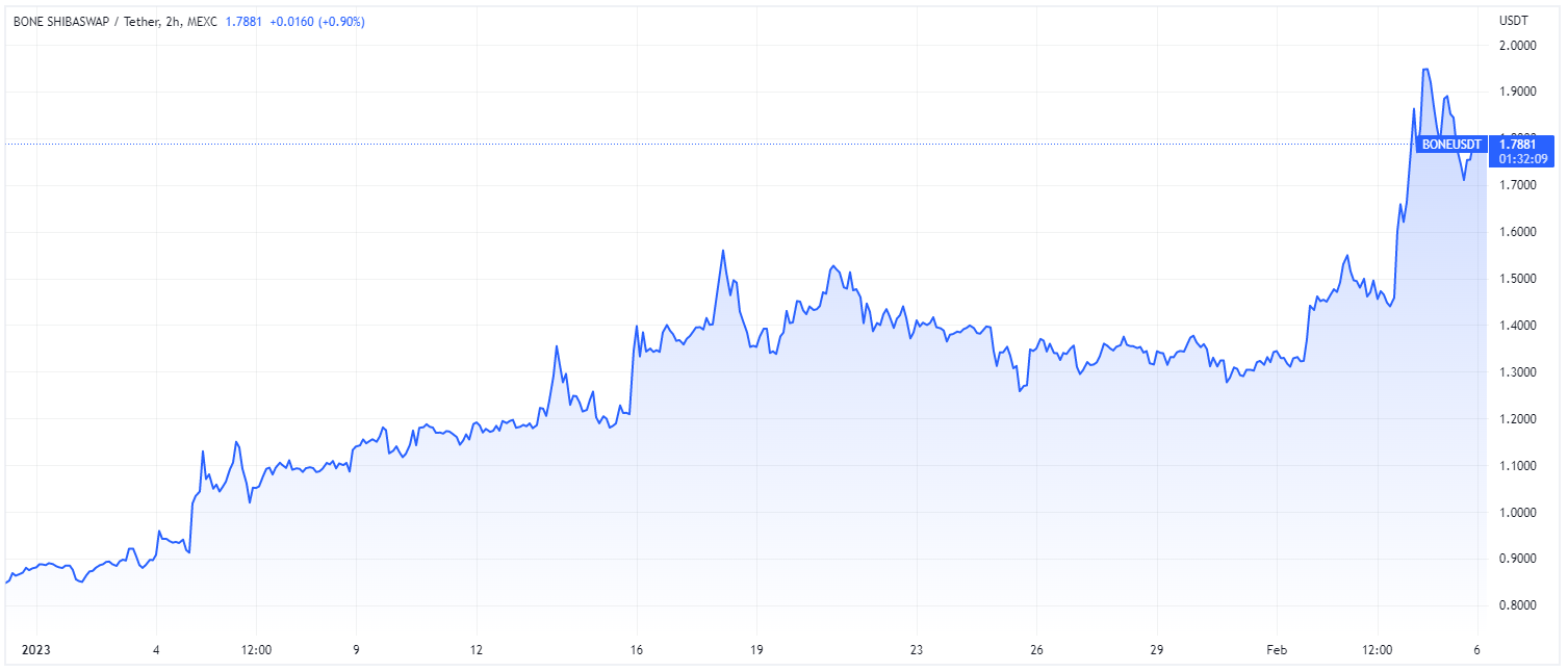 The BONE token has jumped by 120% YTD, increasing from $0.873 to around $1.953. That’s a massive jump, with much of that performance coming in early February.
