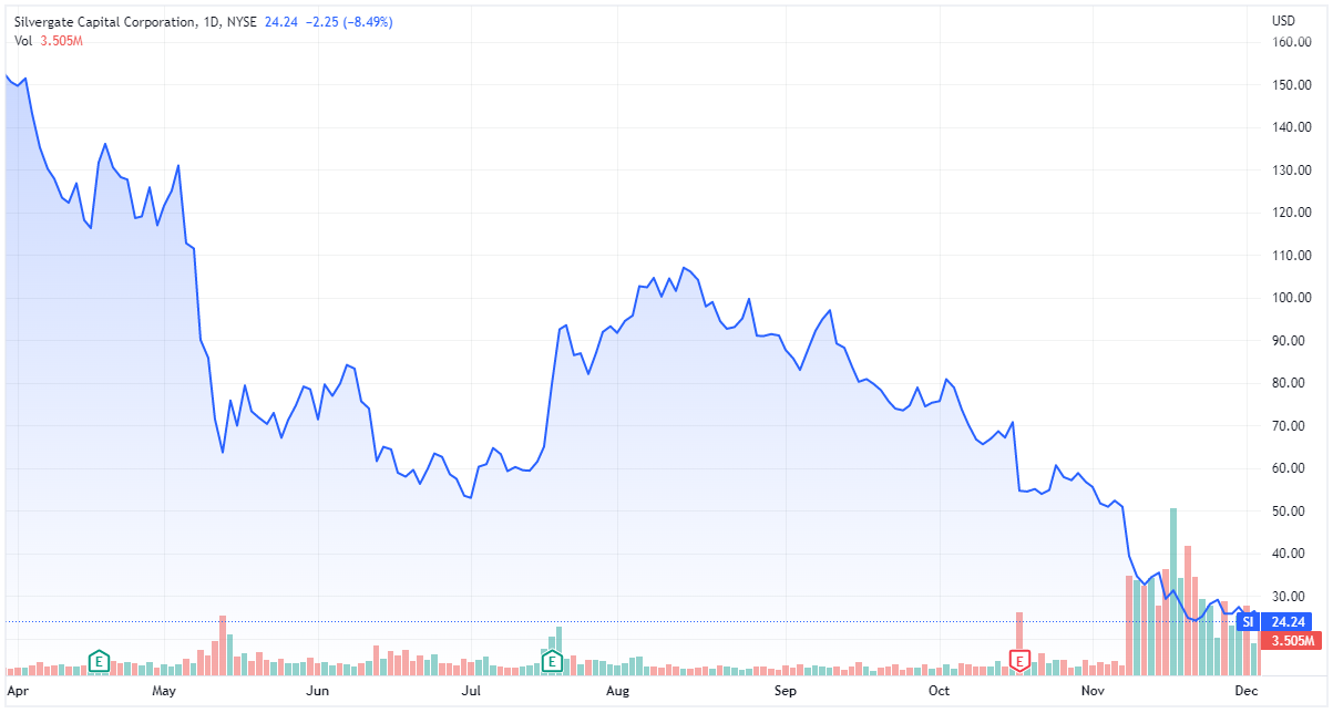Silvergate Capital has taken a double blow from the recent collapse of crypto markets, with exposure to BlockFi and FTX.