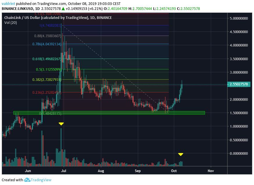 The LINK price is currently trading at $2.5, after reaching a low of $1.5 on September 27.