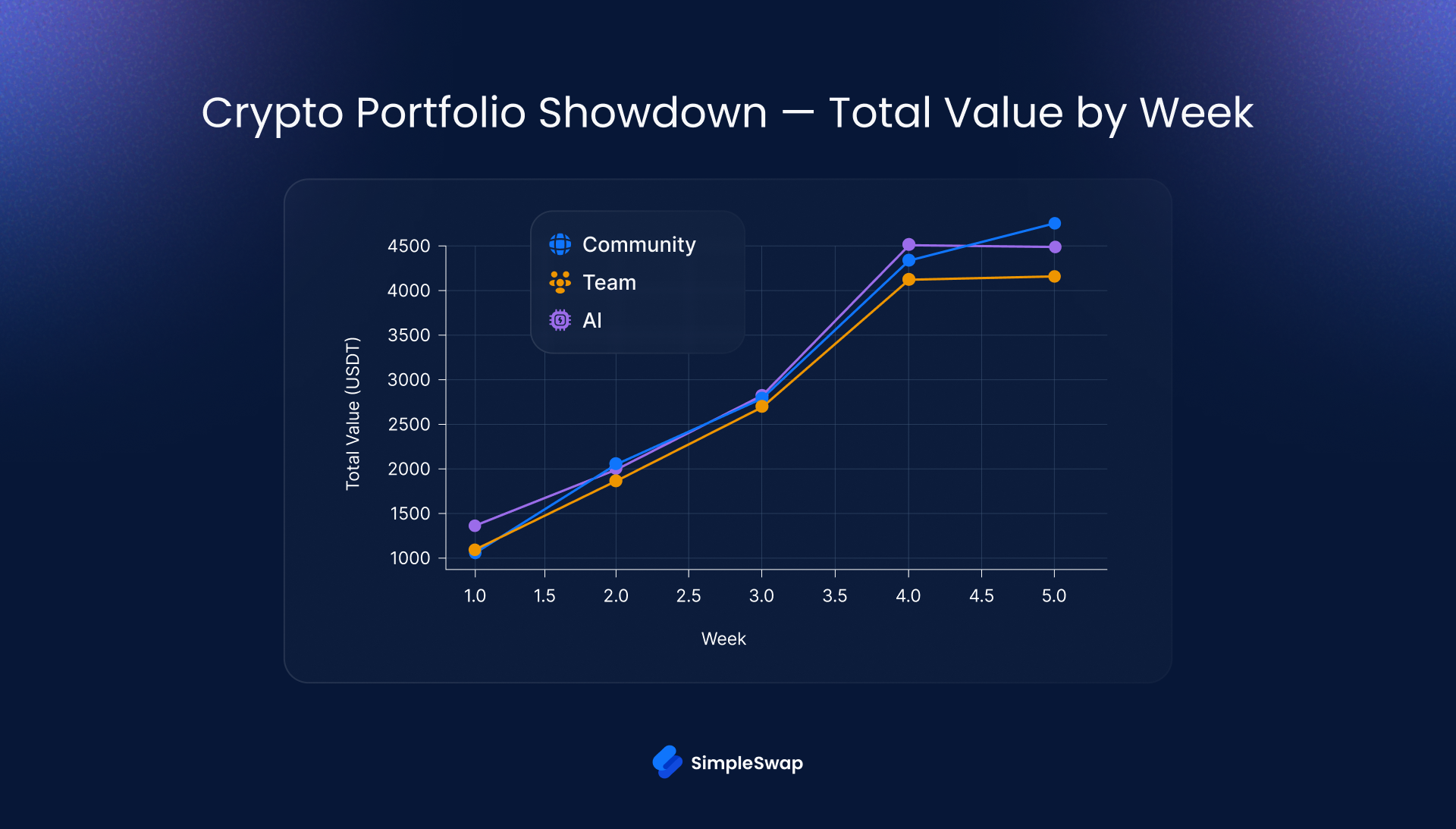 Community won Week 5 and more than 4,000 participants helped shape the result. The message is simple: crypto remains community‑driven. In uncertain regimes, collective intelligence > any single analyst, and process beats prediction. Our job at SimpleSwap is to channel that collective edge into clear playbooks, transparent measurement, and tools that help you execute with discipline.