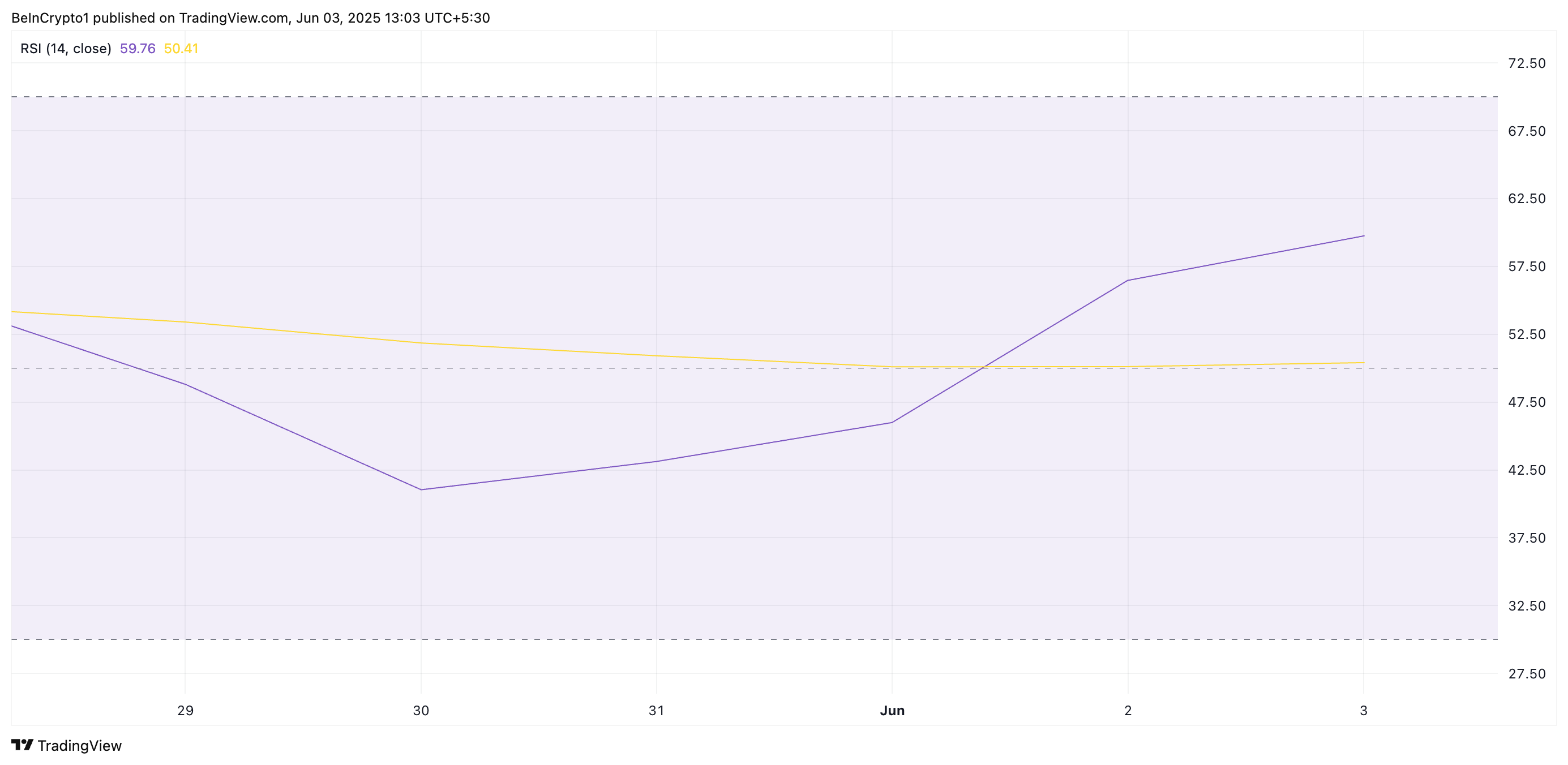 Moreover, the altcoin’s rising Relative Strength Index (RSI) highlights the demand backing the token’s rally. This key momentum indicator stands at 59.76, reflecting the surging buying pressure.