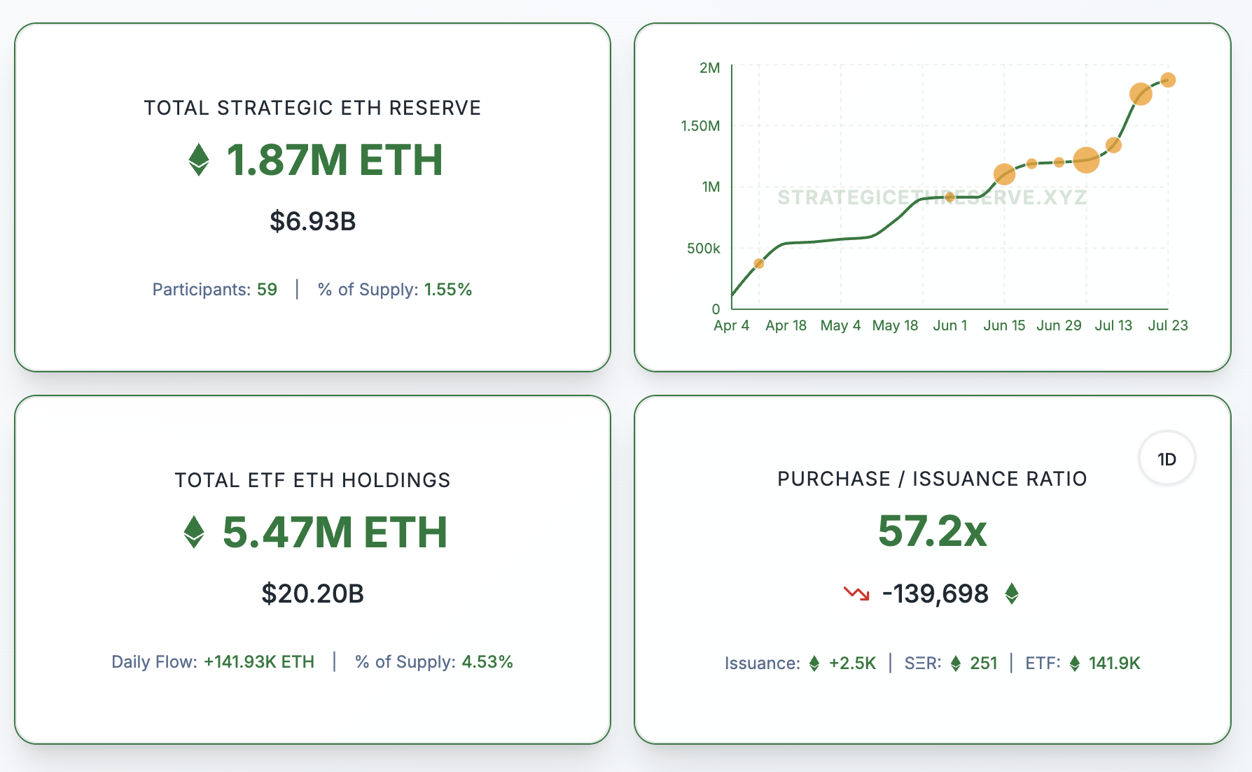 Meanwhile, according to the latest data from the Strategic ETH Reserve, firms collectively hold 1.87 million ETH worth nearly $7 billion in their treasuries.