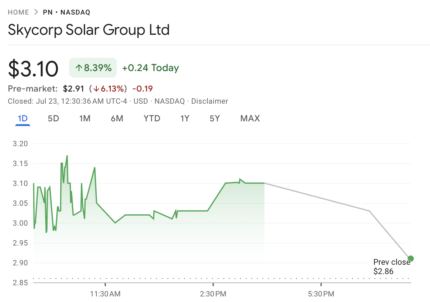 Skycorp Solar Group Limited (PN), a Chinese manufacturer of solar cables and connectors, saw its shares climb 8.39%, following the company’s announcement that it plans to buy Ethereum (ETH) as part of its long-term digital asset treasury management strategy.