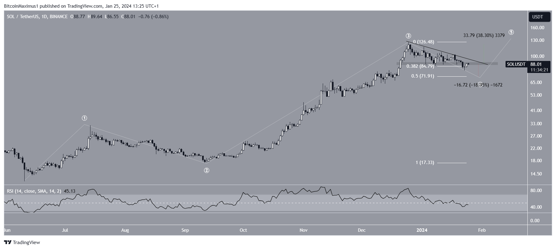 This is in line with the wave count, which suggests that SOL is in wave four of a five-wave upward movement.