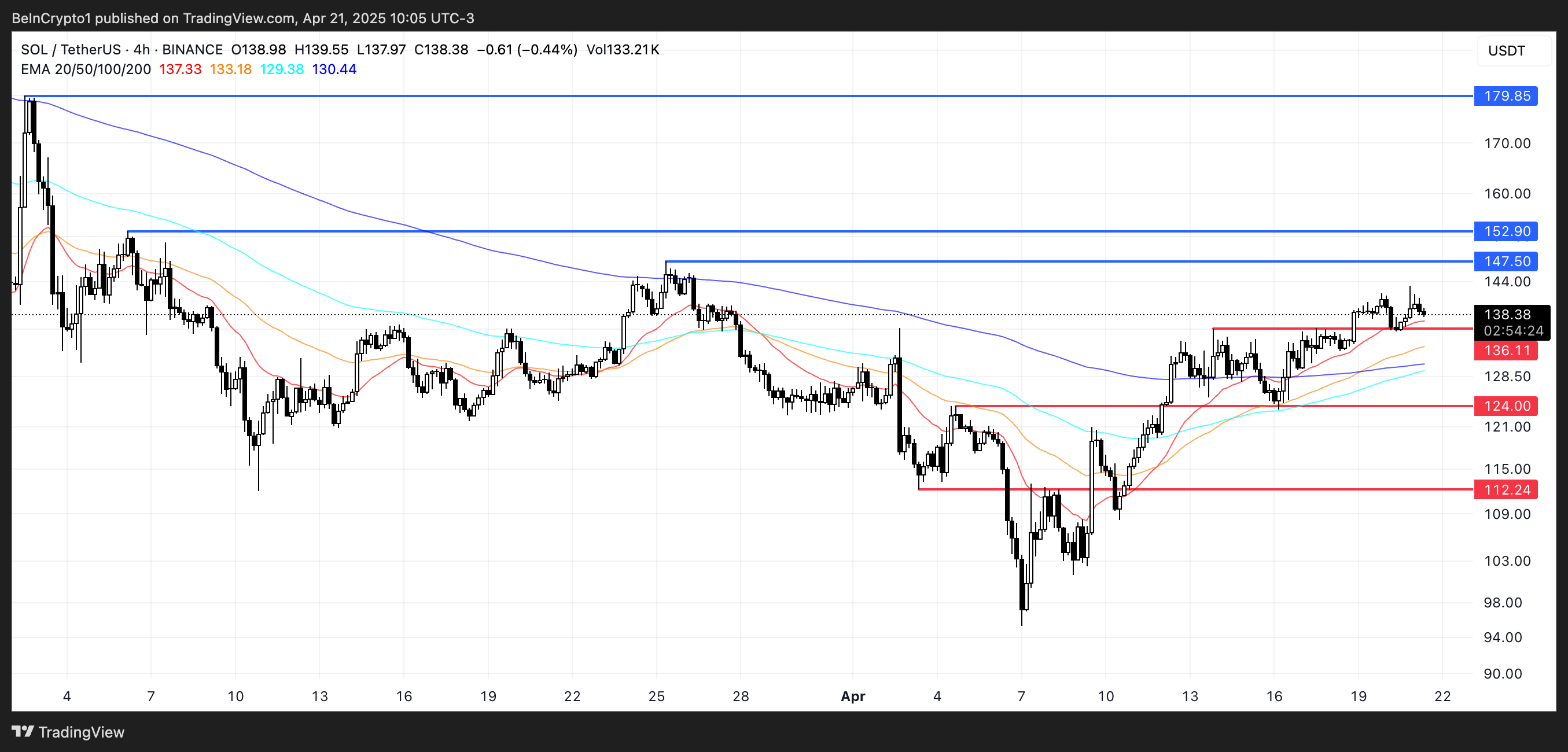 If this momentum continues, SOL price could aim for the next resistance zones at $147 and $152—levels that, if breached, open the door to a potential move toward $179.