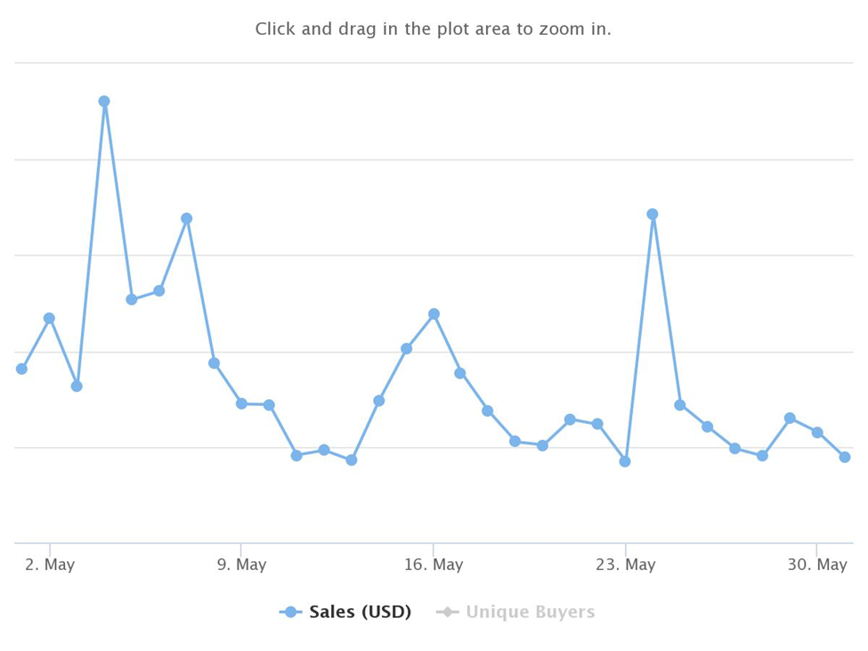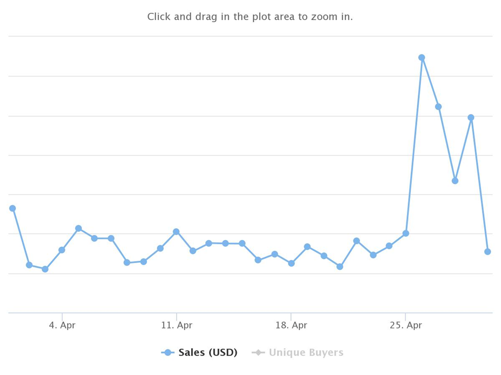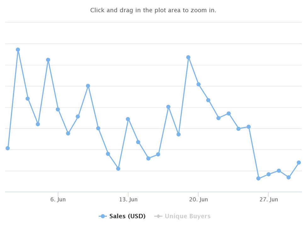 However, June’s figure was a 64% drop in sales from May. In May, the volume on the blockchain was $261.07 million.