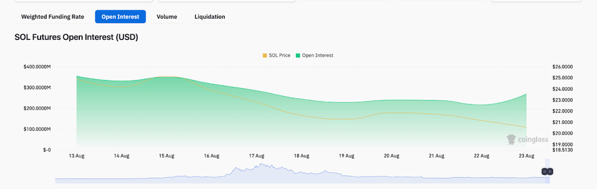 The chart below shows that, after nearly a week on the back foot, SOL’s Open Interest climbed 24% to hit $270 million on August 23.