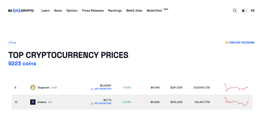 Within 12 hours of the announcement, crypto traders piled on SOL, triggering a nearly 4% price bounce. This has driven Solana’s market capitalization toward the $9 billion milestone, just behind Dogecoin (DOGE).