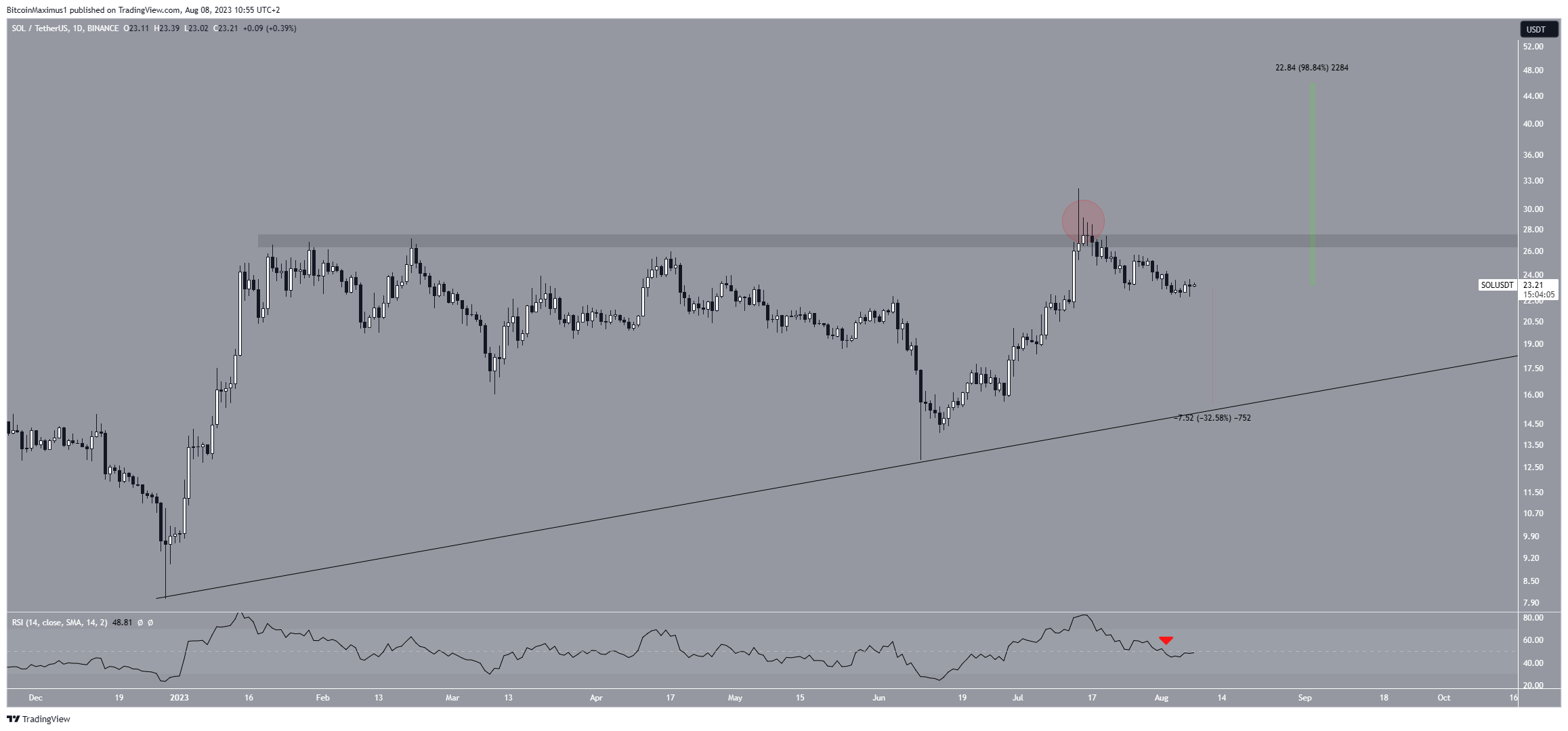 Following its peak for the year at $32.13 on July 14, Solana (SOL) ‘s value has steadily decreased. This decrease has solidified the $27 horizontal range as the main resistance area.
