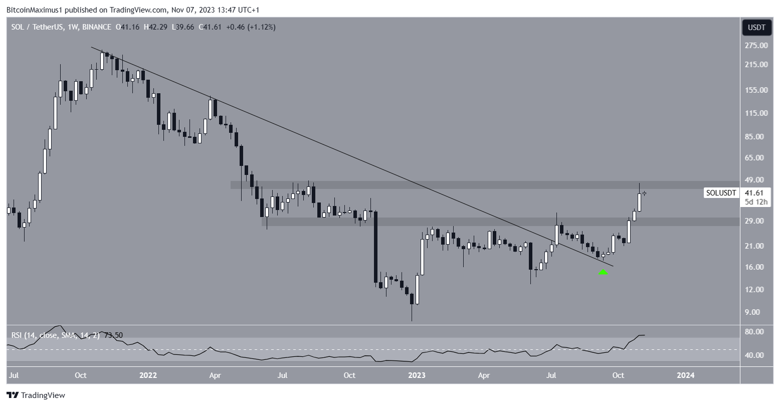 After a positive October, the Solana (SOL) price reached a new yearly high of $46.90 on November 1.