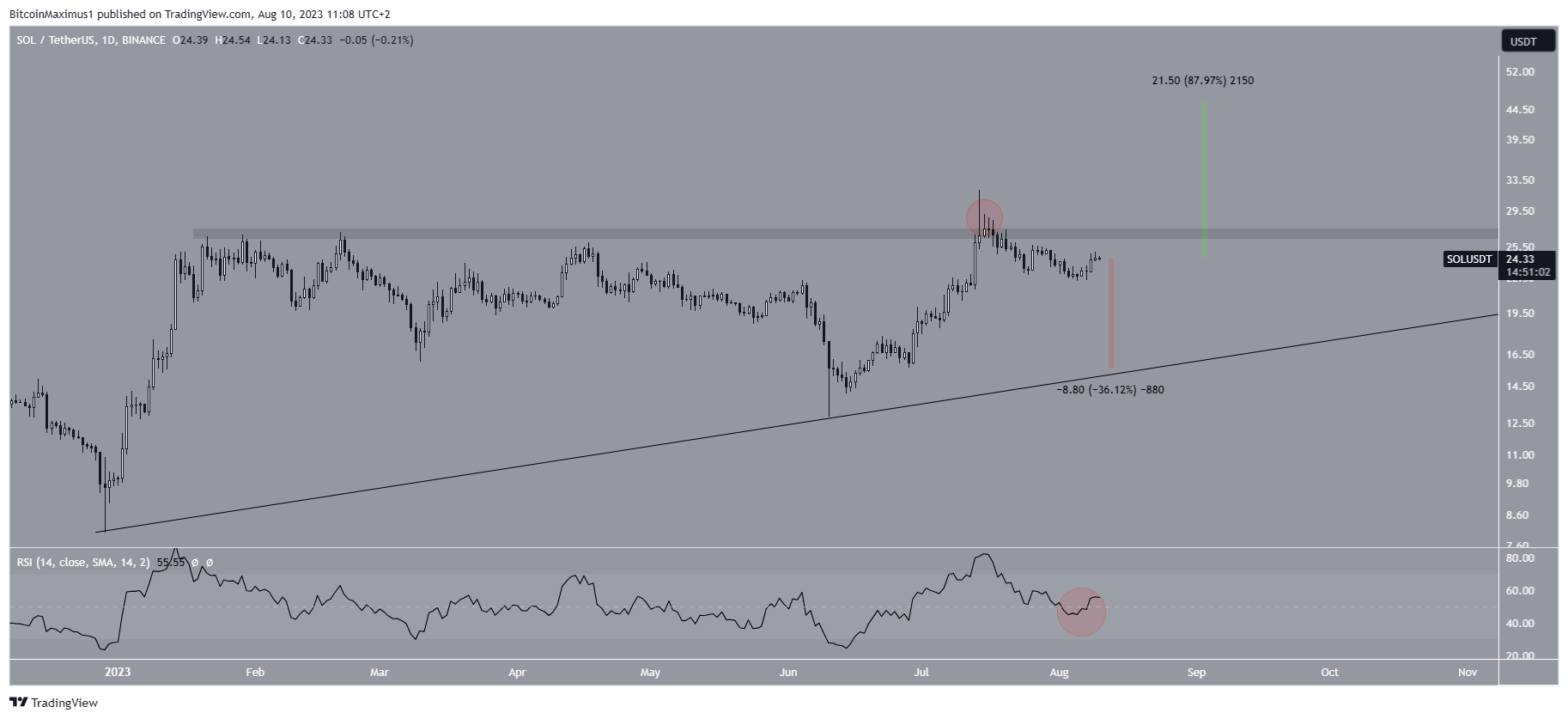Despite this bearish SOL price prediction, a breakout above $27 will mean that the correction is over and an upward movement has begun. In that case, the SOL price can increase by nearly 90% and reach the $46 resistance area.
