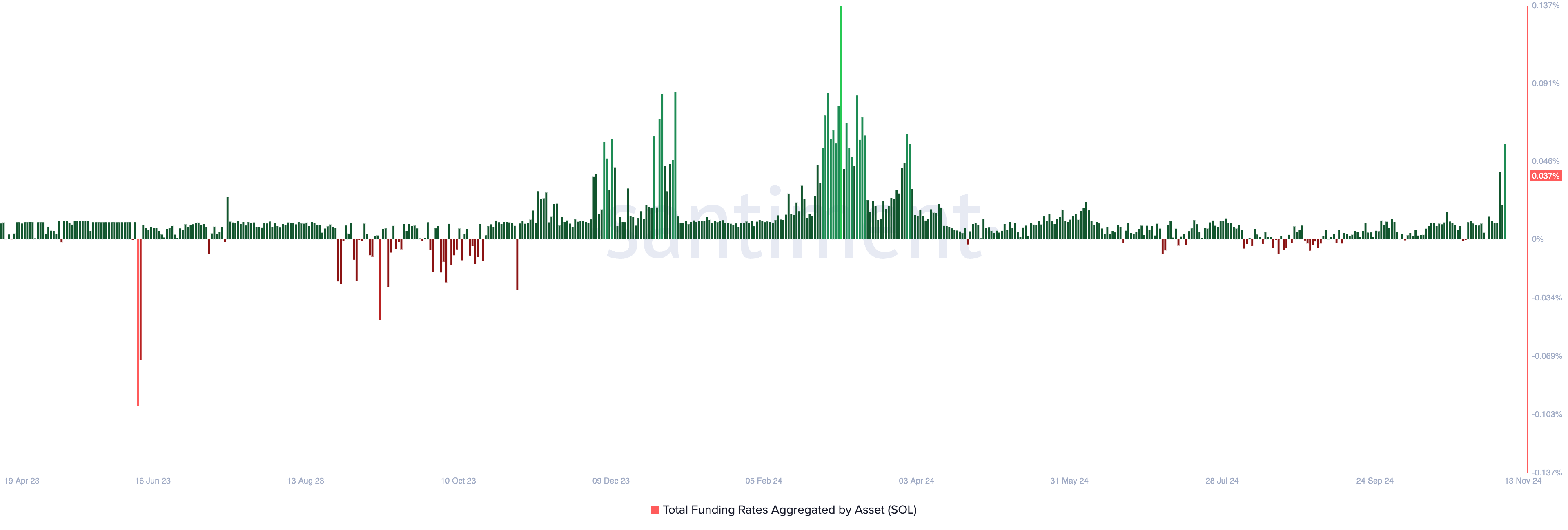 Additionally, the surge in Solana’s funding rate suggests a possibility of a continued pullback below the $200 price mark. As of this writing, it has spiked to an eight-month high of 0.037%.