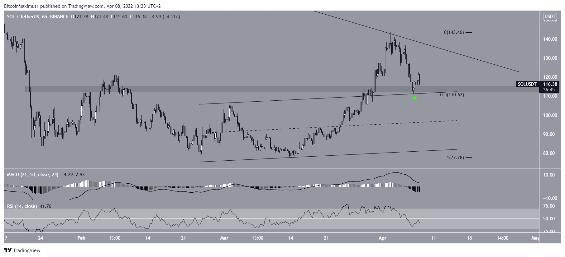 SponsoredDespite the ongoing decrease, the six-hour chart shows that SOL has bounced at the resistance line of an ascending parallel channel (green icon).