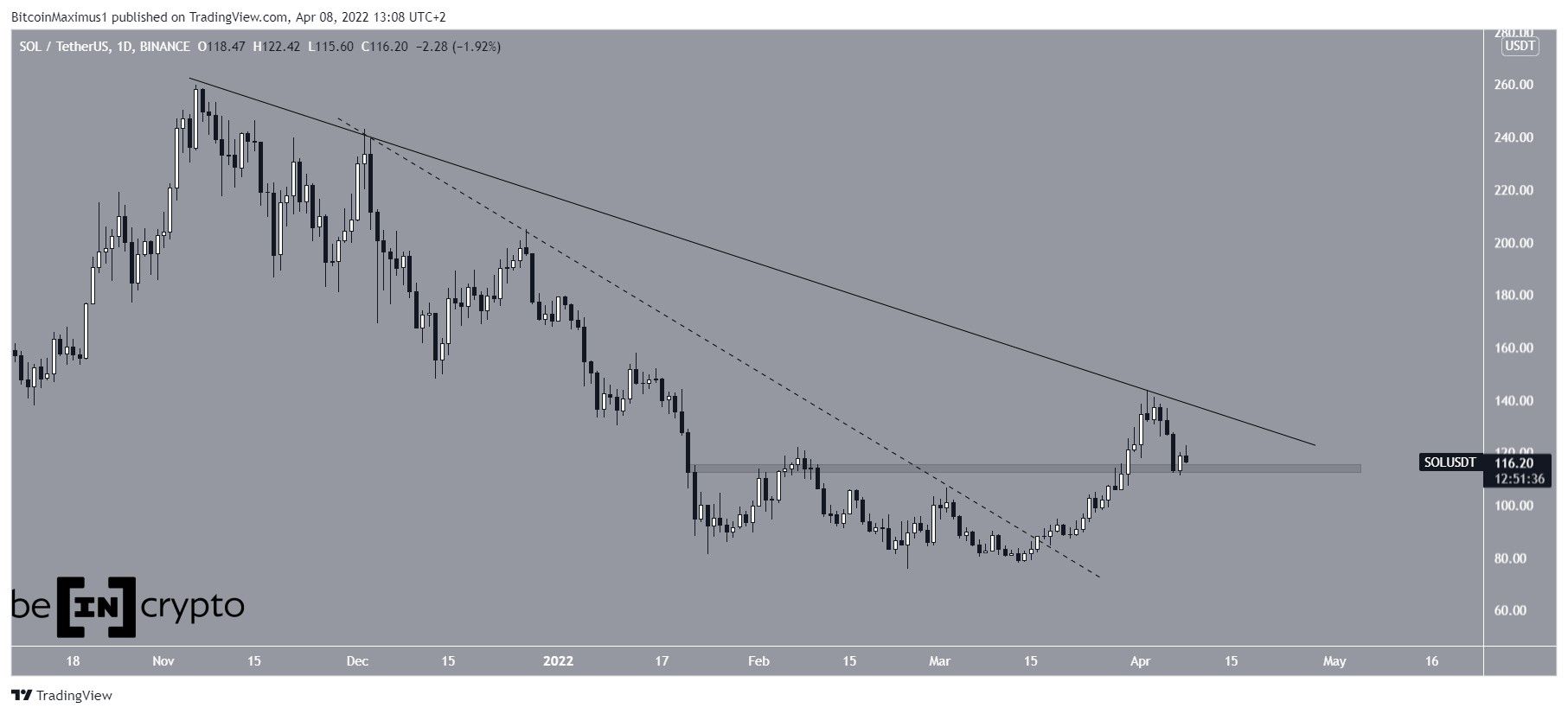 Solana (SOL) has failed to break out from a long-term descending resistance line and is attempting to find short-term support.