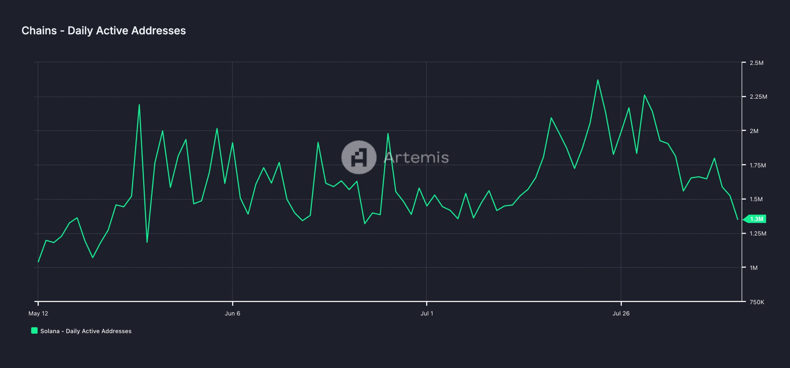 According to Artemis, Solana’s DEX volume has declined by 72% in the past seven days. On Sunday, it totaled $897 million, marking the network’s single-day lowest DEX volume since June 30.