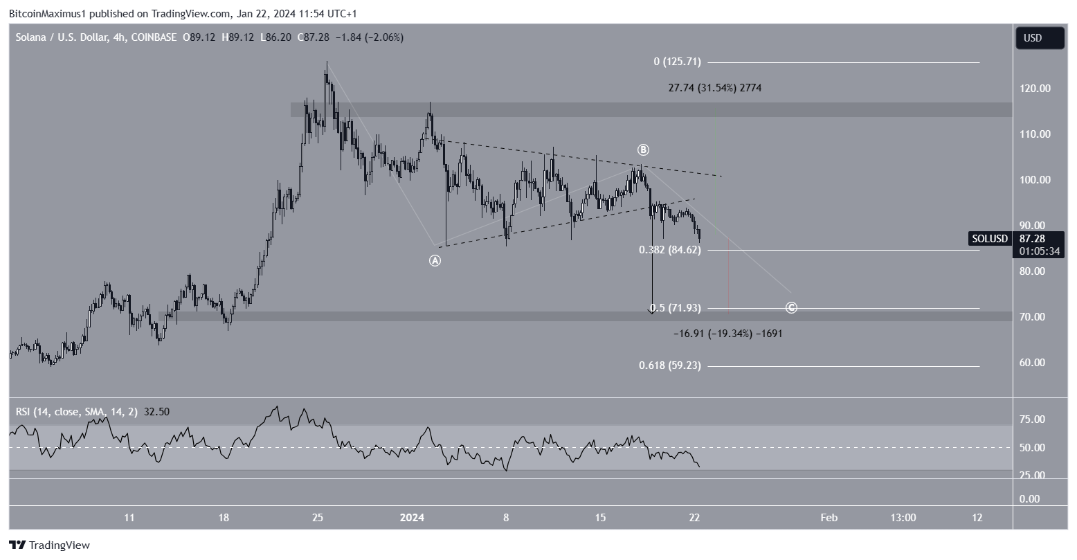 However, the SOL price has fallen since. On January 19, 2024, it broke down from the ascending support trend line. At the time, the trend line had been in place for 96 days. Currently, SOL trades inside the 0.382 Fib retracement support level.