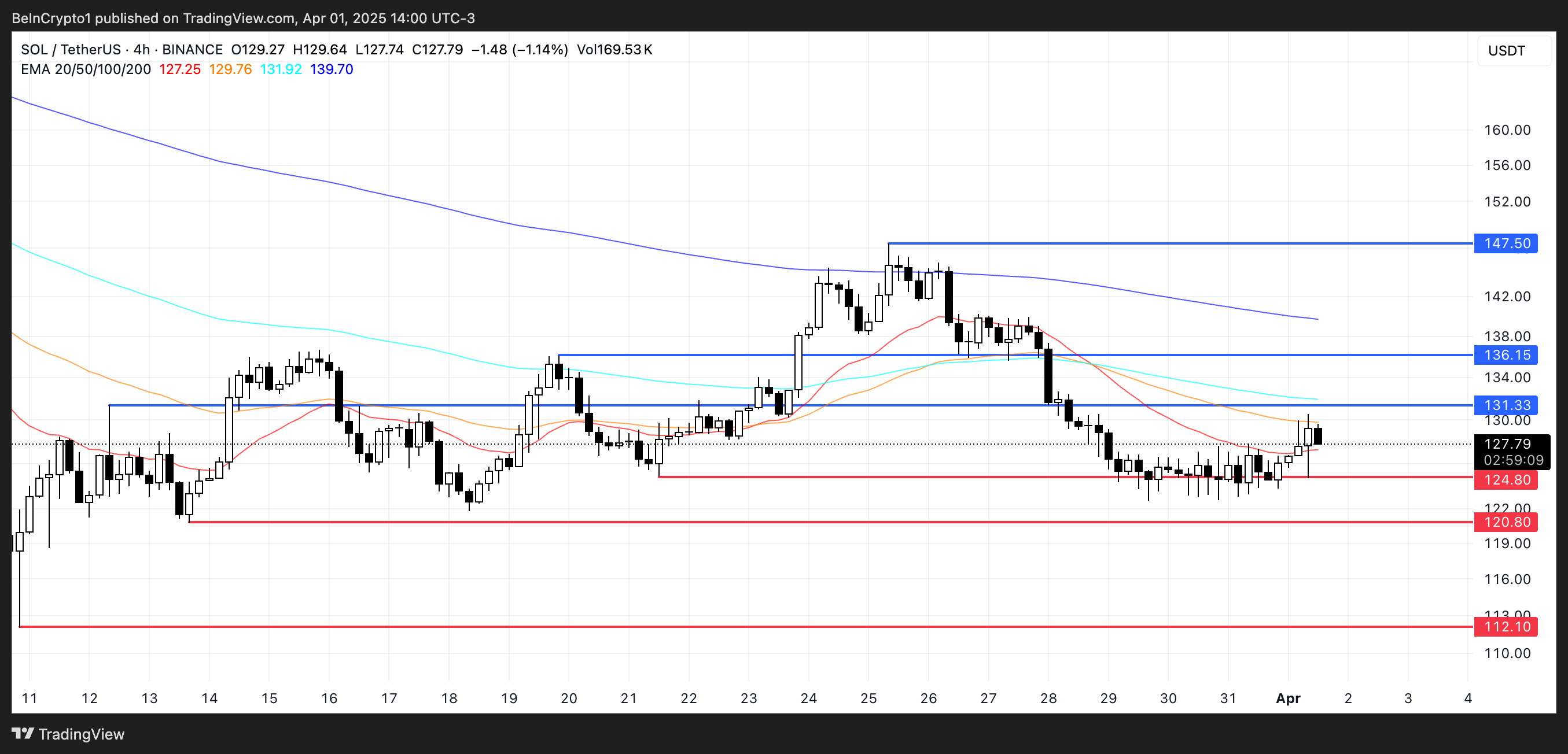 Should the downtrend gain strength from there, SOL might revisit deeper support levels around $112.