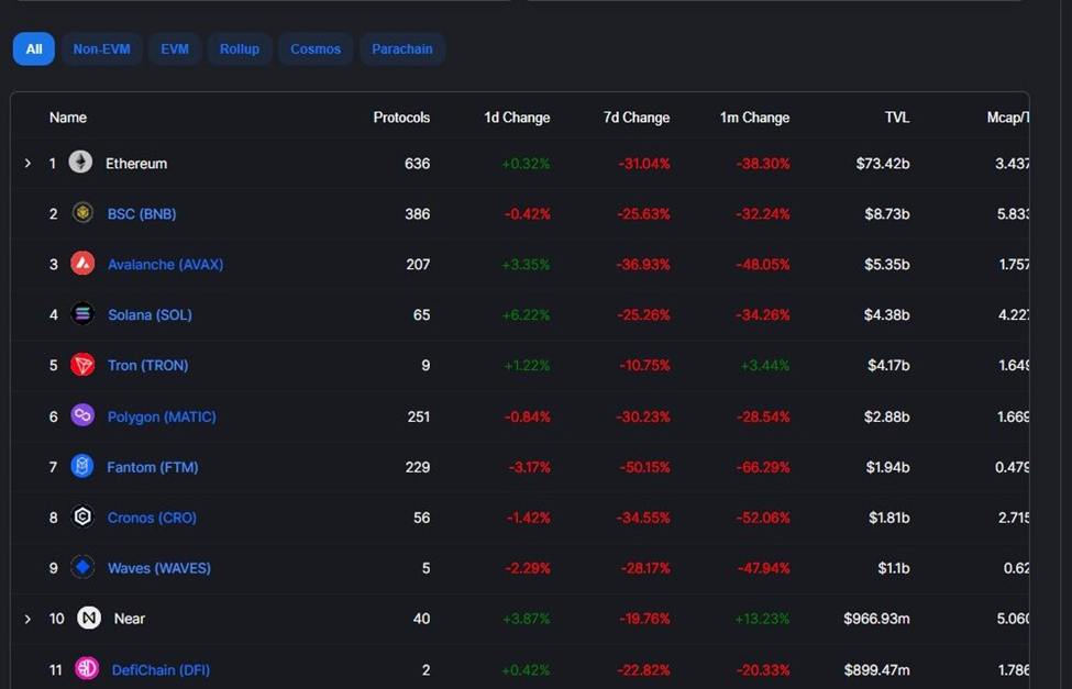 Despite plummeting by more than $6 billion, Solana has maintained its position as the fourth blockchain with the most value locked.