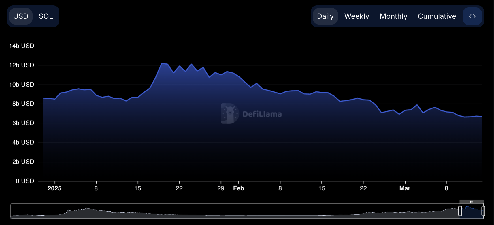 As network participation drops, Solana’s ecosystem feels pressure, with liquidity drying up across its decentralized finance (DeFi) protocols. This is reflected by the steady drop in the network’s total value locked (TVL). At press time, Solana’s TVL stands at $6.69 billion, its lowest since the beginning of the year.